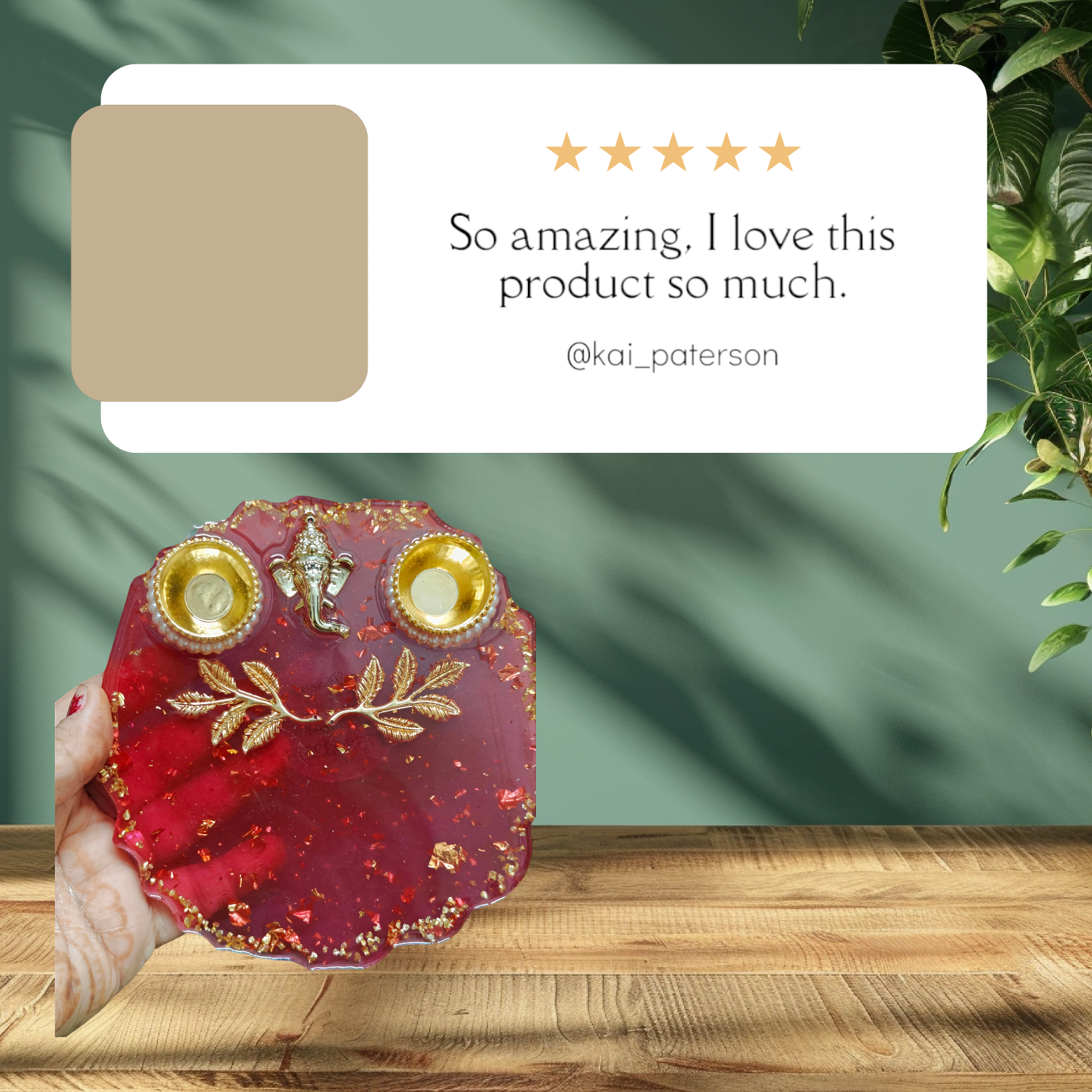 Durable & Easy to Clean: The smooth resin surface is long-lasting and simple to wipe clean after use. Available in Different Sizes: Choose the perfect size to suit your needs, from a small, intimate offering to a larger display piece.Personalize Your Pooja ExperienceWe believe your spiritual items should reflect your unique style!